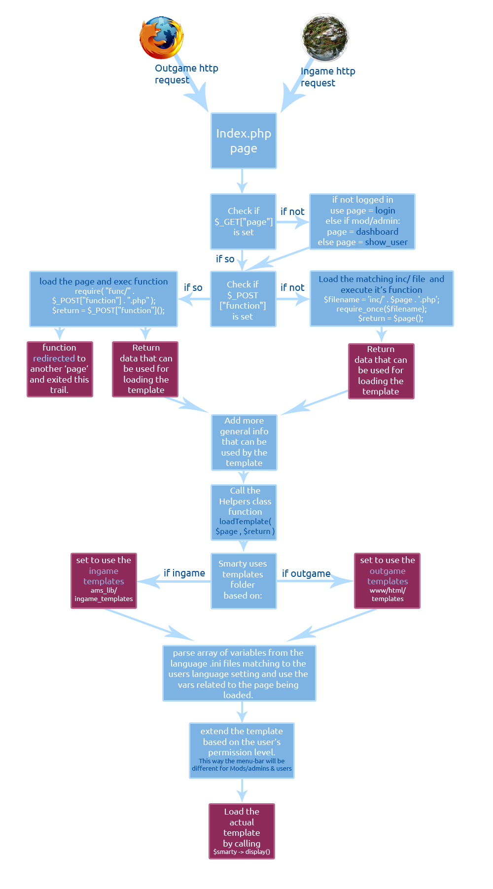 - Smarty comes in handy here: The ingame browser loads a different template set as the outgame version (The ingame templates are located in the 'ams_lib' itself). Why can't it load the same templates you might think? The ingame browser uses LibWWW, which supports only a small set of html tags and no css. You can see the allowed set of html tags on the Ingame browser page.